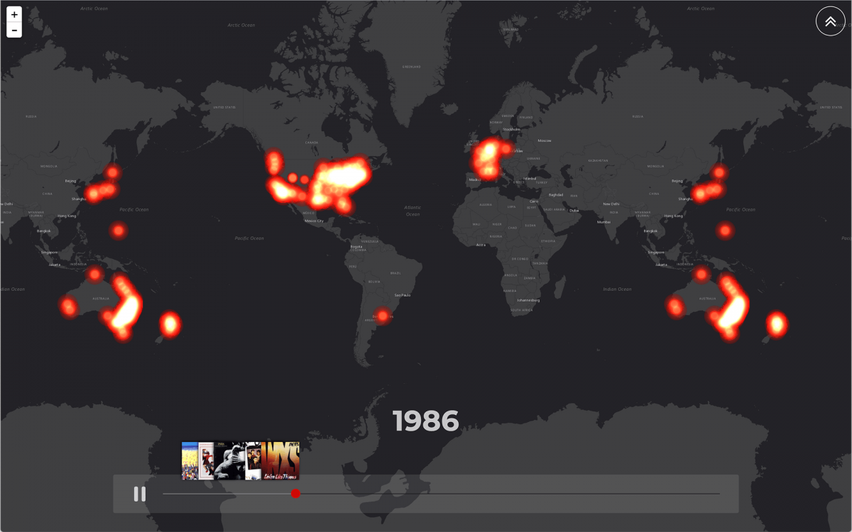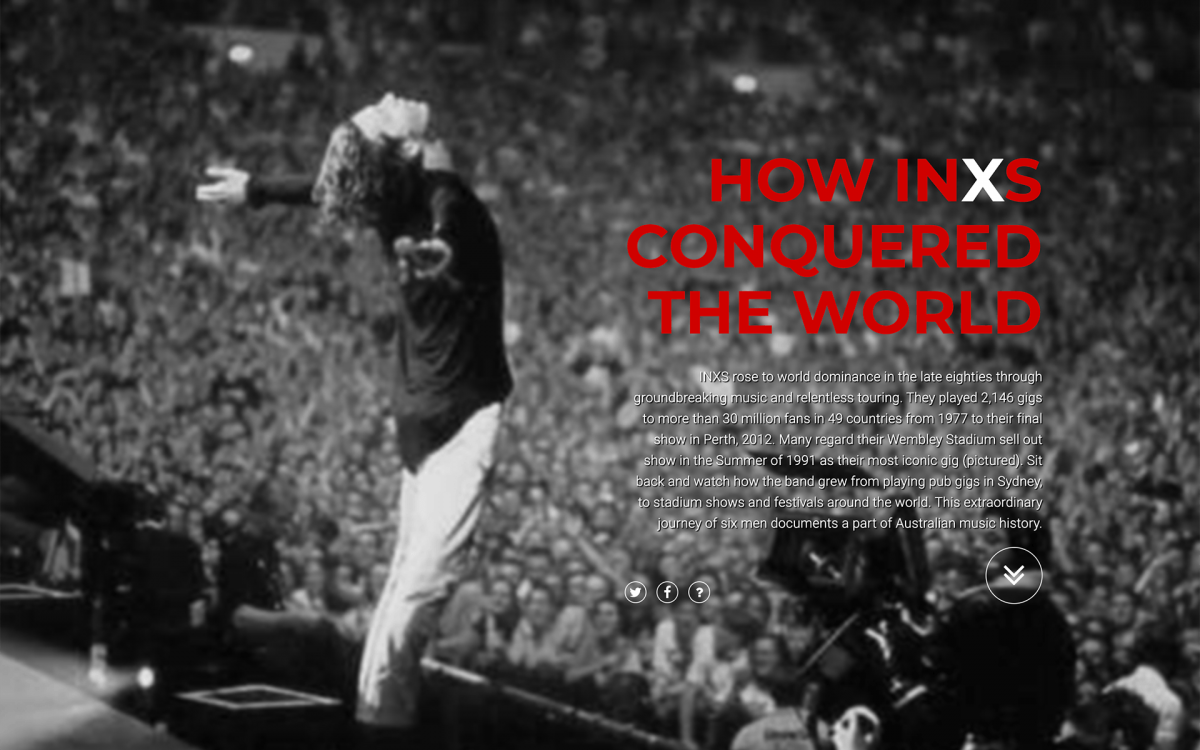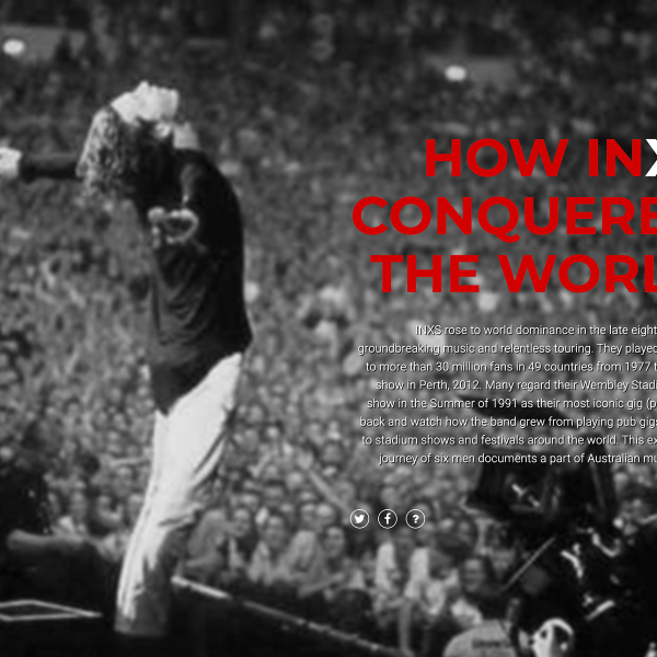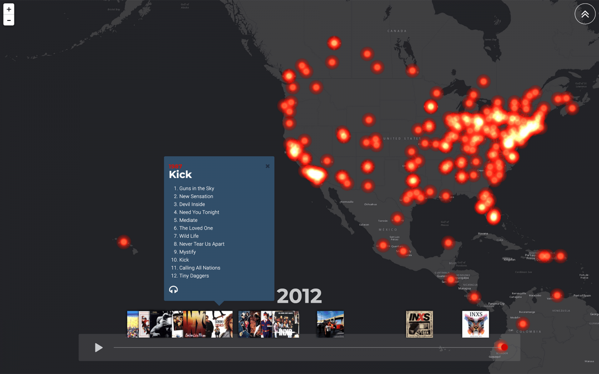 How INXS Conquered the World is an interactive mapping application celebrating the band’s 2,145 gigs from 1977 to their final show in Perth, 2012. INXS join an exclusive of bands who have played over 2000 gigs which includes The Rolling Stones, Bon Jovi and Bob Dylan. It’s not until the spread of their gigs is mapped over time do you see the true extent of their touring schedule over the years, and the effect they had on millions of fans around the world.